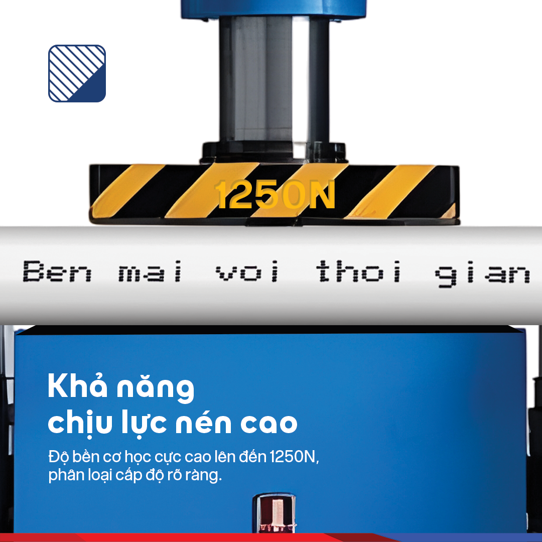 Ống luồn cứng uPVC Trần Phú được thiết kế với độ bền cơ học cao, phân loại theo nhiều cấp độ chịu lực. Đặc biệt, dòng ống Heavy Duty có khả năng chịu nén lên tới 1250N, giúp bảo vệ dây điện khỏi áp lực từ bê tông, sàn hoặc đất khi thi công âm. Nhờ đó, dây dẫn không bị biến dạng hay nứt vỡ lớp vỏ trong suốt quá trình sử dụng.