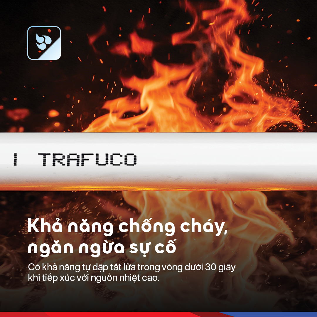 Trong trường hợp xảy ra sự cố điện như quá tải hoặc đoản mạch, ống luồn không duy trì cháy và có khả năng tự dập tắt trong thời gian ngắn (dưới 30 giây), góp phần hạn chế cháy lan sang các khu vực xung quanh. Đồng thời, với khả năng cách điện cao (chịu điện áp đến 2000V), ống giúp tăng cường mức độ an toàn cho toàn bộ hệ thống điện.