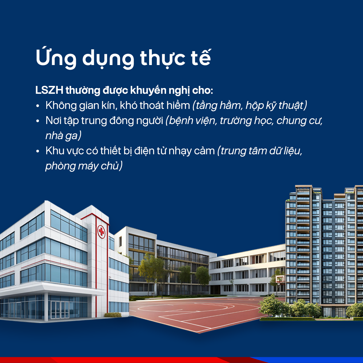 LSZH là lựa chọn an toàn vượt trội khi yêu cầu cao về khói, khí độc trong không gian kín, đông người hoặc có thiết bị điện tử nhạy cảm.